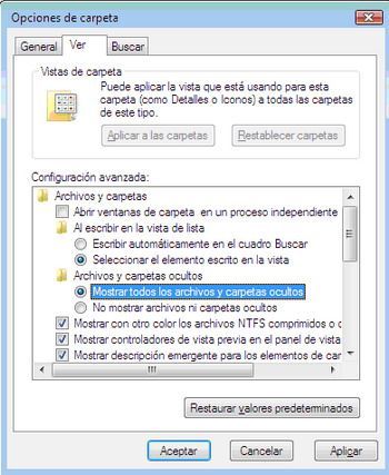 1. Verificación Mostrar archivos y carpetas ocultos. Recomendamos que los archivos y carpetas de sistema estén ocultos. Esto es importante ya que muchos usuarios poco experimentados pueden borrar archivos de sistema que son necesarios para el buen funcionamiento de este.