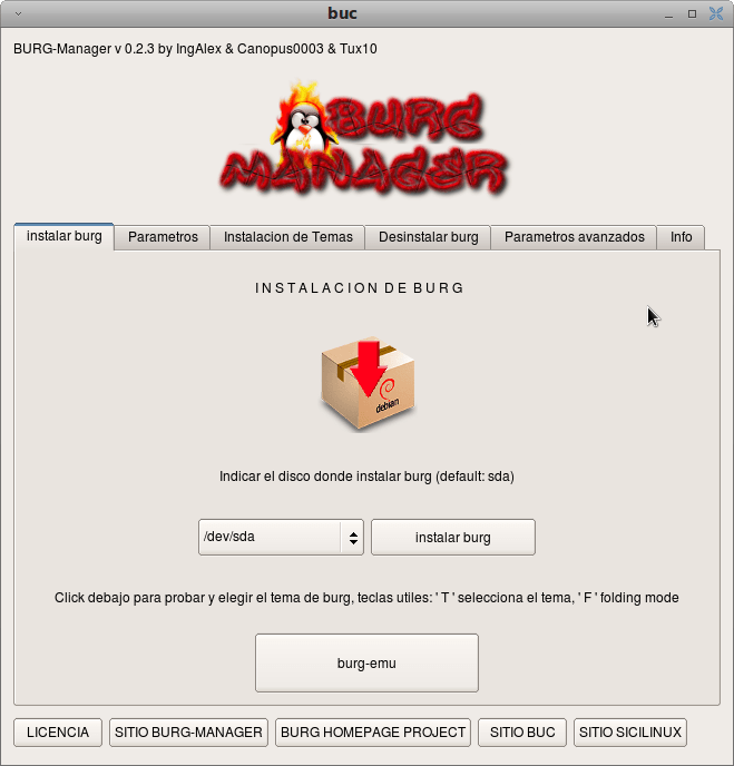 y descargamos el burg manager ya sea para amd64 o para i386 en mi caso lo haré para i386 una vez que lo descargamos lo instalamos