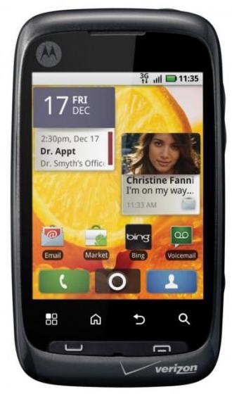 Motorola nos presenta el nuevo Motorola Citrus, el cual es un móvil de gama baja que esta disponible en Verizon Wirless. Este móvil de gama baja viene con Android 2.1 como sistema operativo, ademas de que cuenta con una pantalla táctil QVGA de 3 pulgadas con resolución de 240 x 320 pixels y una cámara de 3 pulgadas con la que podremos tomar fotos con una calidad pasable y grabar vídeos.