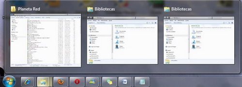 Cuando por ejemplo, tenemos abierto tres ventanas de explorar de Windows, como podemos ver en el ejemplo, y estas están minimizadas, al apoyarnos sobre el ícono de Explorar de Windows que se encuentra en nuestra barra de tarea de Windows 7, podemos observar claramente la visión previa de las tres en miniaturas, pero esto se puede desactivar de una forma muy fácil, basta con seguir la secuencia de pasos que a continuación daremos a conocer:
