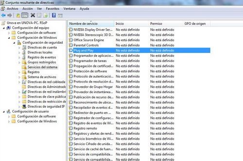 Configuración del Equipo/Configuración de Windows/Configuración de Seguridad/Servicios del Sistema