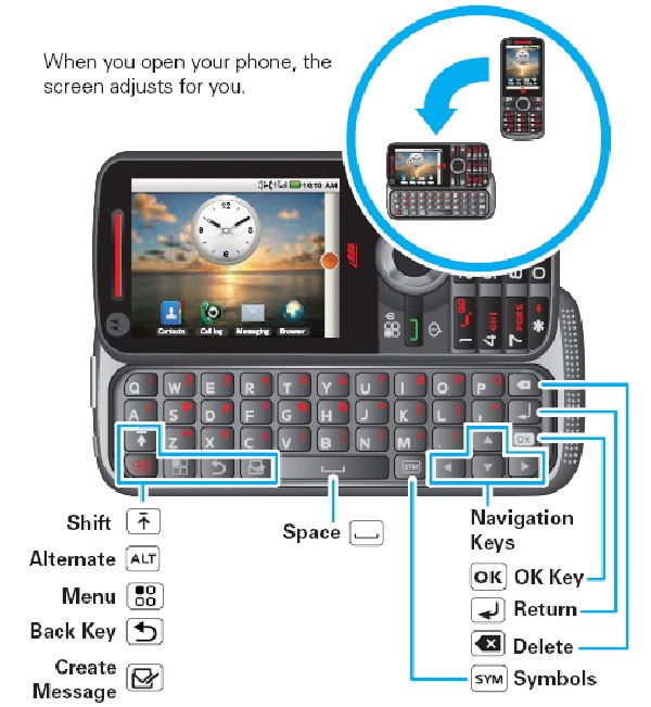 Como podemos ver en la imagen, al contar con un teclado deslizable QWERTY horizontal, el fabricante le dio un sistema de detección de rotación, que sirve para rotar la pantalla cuando cambiamos el móvil de posición.