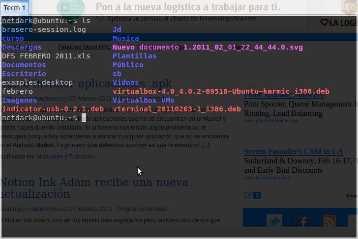 Y así una serie de programas que utilizo siempre, pero lo principal es la terminal, y claro la que tengo es terminator, pero algunas veces olvido abrirla y cuando la busco no esta!!, y si la tengo abierta ocupa un espacio mas en mi menú de aplicaciones abiertas, lo ideal seria que al iniciar sesión se ejecutara automáticamente pero como lo dije es una aplicación mas en mi menú, para evitar esto y para tener acceso rápido a la terminal y ocultarla cuando no la use haremos uso de Vterminal, esta aplicación nos da acceso rápido a una terminal desde un click y de igual manera nos permite ocultarla con un click, para ello haremos uso de nuestra amada terminal.