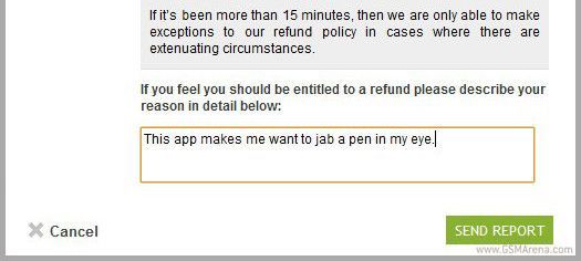 En realidad, casi todos los desarrolladores aplican como norma 15 minutos de prueba, tras los cuales, el cliente en principio no podría solicitar el rembolso de la aplicación. Pero la normativa que se recoge dentro de la Google Play es otra y exige que los desarrolladores devuelvan el dinero en un plazo máximo de 48 horas desde que se realizó la compra, con lo que podríamos devolverla incluso 2 días después.