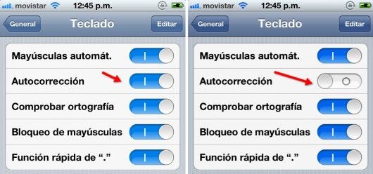 Ajustes >General >Teclado >Desactiva la opción de Autocorrección