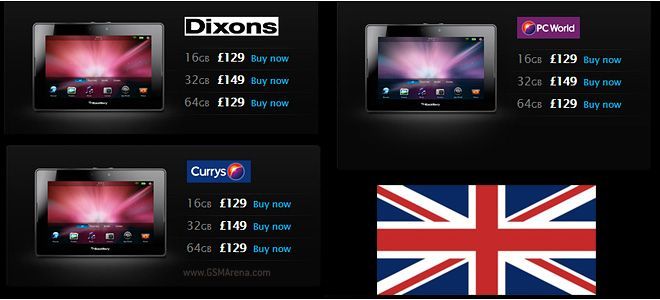 Hablamos por supuesto de la Blackberry Playbook, y es que actualmente, se vende muy por debajo de su precio habitual de mercado, aún con muchas de las rebajas que se le fueron aplicando de forma paulatina. Así, por ejemplo en Reino Unido se puede conseguir en distintas tiendas a costes como los que les mostramos en la captura de pantalla, algo impensable hace apenas unos meses.