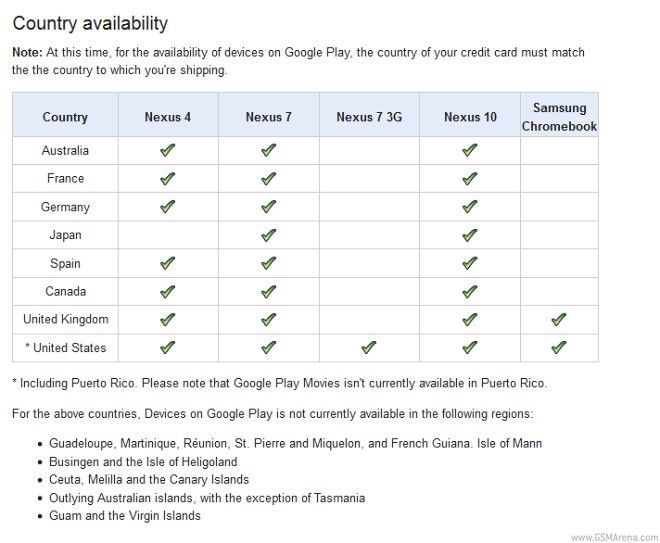 Y es que precisamente hoy era el día del lanzamiento de las tabletas Google Nexus 10 y Google Nexus 4, las últimas presentadas por el gigante de los buscadores y que han llegado al mismo tiempo en muchos de los mercados mundiales, España incluida. La tabla que les he presentado antes es precisamente la que resume las naciones en las que se ha estrenado.