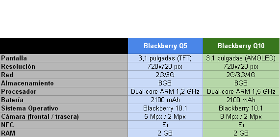 En breve tendremos preparado un análisis a fondo para presentaros todos los detalles de este nuevo terminal de RIM. Os dejamos una pequeña tabla comparativa entre la Q5 y la Q10 para que os hagáis una idea de cuan parecidas son las dos.