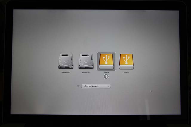 Una vez que hemos realizado las particiones podemos reiniciar nuestro Macbook Pro Retina con el pendrive en uno de sus puertos USB. Cuando el sistema nos presente la unidad desde la que queremos arrancar solo deberemos elegir la opción del USB donde está el pendrive con Ubuntu.