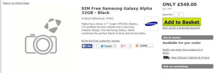 Hoy os podemos informar ya cual será el precio del Samsung Galaxy Alpha. La fuga ha surgido desde un comercio minorista que ha filtrado durante unos minutos ha dejado ver cual será el precio del nuevo terminal de Samsung, destinado a competir con el cercano iPhone 6. El comercio online que ha cometido el «error» ha sido Mobile Fun, el precio que ha aparecido para prepedido del Samsung Galaxy Alpha es de 549 libras para la versión de 32 GB en negro y libre. Si pasamos ese precio a euros podemos llegar a la conclusión de que el Samsung Galaxy Alpha costará 690 euros.