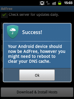 AdAway es un bloqueador de anuncios de código abierto para Android utilizando el archivo de hosts. También necesita tener permisos de superusuario.
