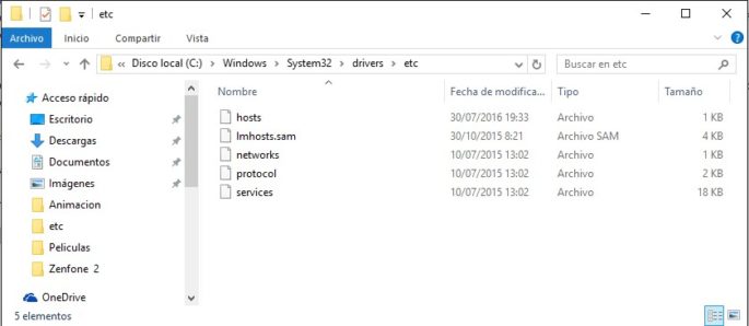 Sobreescribir/Mover/Copiar el archivo Hosts en Windows 10