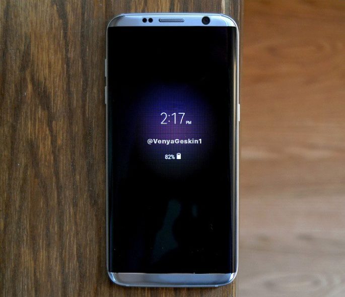 La imagen que os mostramos sobre estas líneas y que acaba de filtrarse, muestran una vista frontal del Samsung Galaxy S8 y lo que parece que será la pantalla de bloqueo del dispositivo que muestra el porcentaje de la batería y el tiempo. La imagen filtrada coincide con los renders que se habían filtrado hace ya algún tiempo. Pero lo más interesante de la misma es que podemos ver claramente los biseles delgados en la parte superior e inferior junto con una pantalla con doble borde curvo a los lados. No hay botón de inicio y como se rumorea, el sensor de huella digital puede estar incrustado en la pantalla.