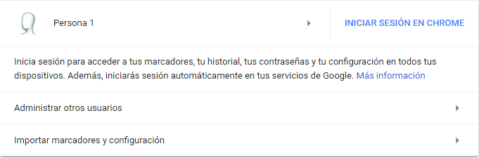 En cuanto entremos, veremos la opción titulada «Persona 1» acompañada de otra que nos permite iniciar sesión. Lo que haremos será pulsar ahí y meter nuestras credenciales. De esta manera ya estaremos dentro de google chrome y podremos saltar al siguiente paso.