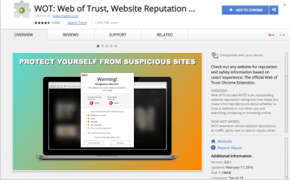 Esta extensión también es muy eficaz para garantizar la privacidad y seguridad de los usuarios a través de Internet. Es una extensión chrome de código abierto que evalúa todos los sitios web en función de la confianza del sitio, la fiabilidad de los vendedores, la privacidad y la seguridad infantil, etc. En mi opinión, completamente obligatoria.