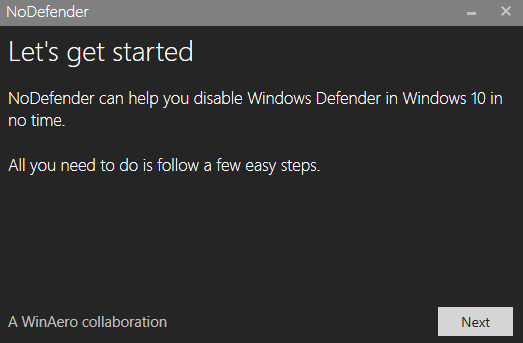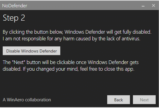Terminamos y clicamos en «next». Ahora será tan fácil como darle al botón que nos ofrece el programa y conseguiremos quitar windows defender de nuestro ordenador definitivamente.