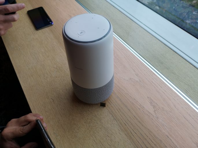 Huawei también mostró una columna inteligente basada en el servicio Alexa de Amazon con la particularidad de poder ser utilizada como router para el compartir conexiones de banda ancha móvil 4G a través de redes wifi y es compatible con redes mesh.