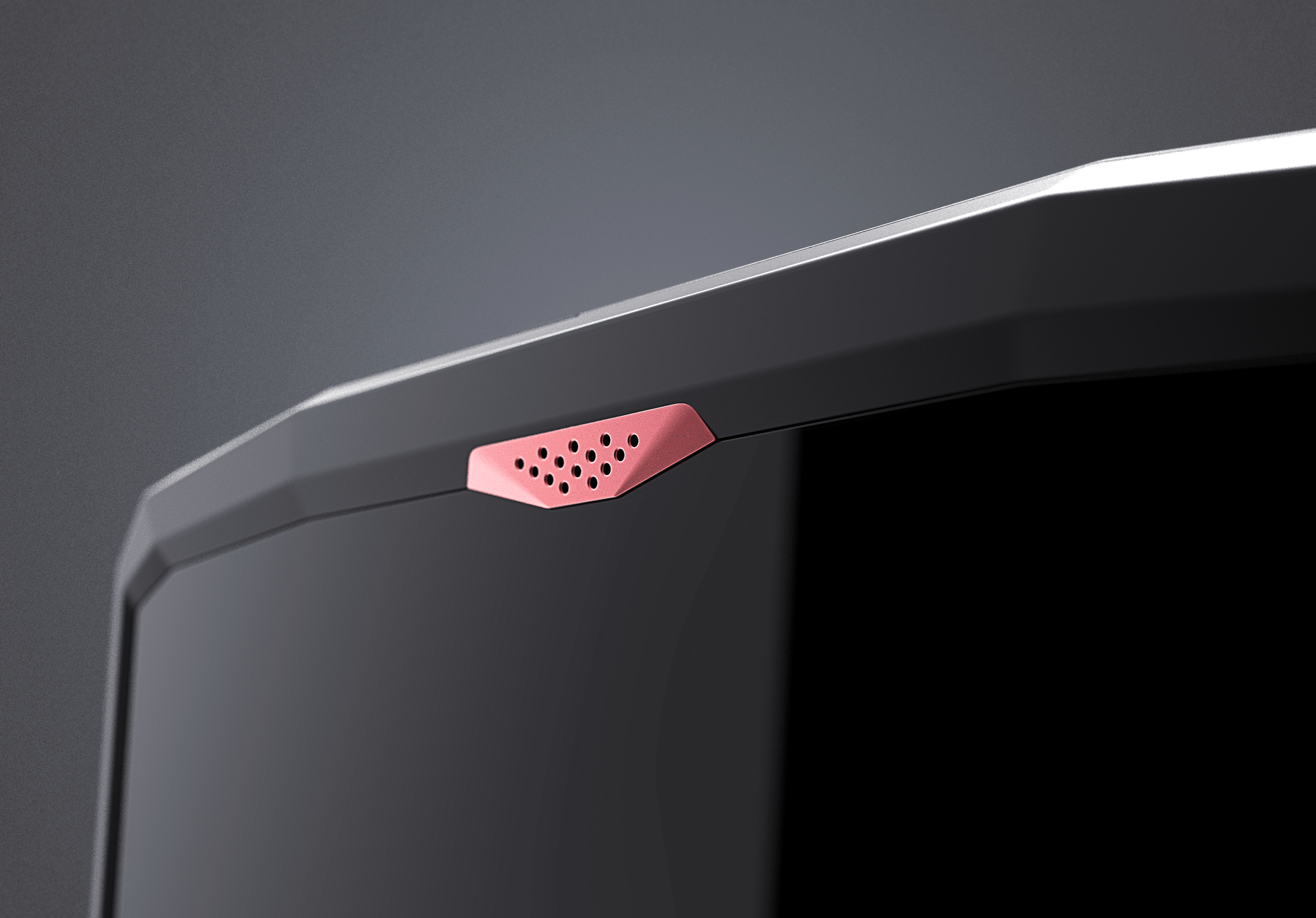 En la parte trasera del terminal encontramos las cámaras que ocupan una posición centrada en la parte superior. Justo debajo de ellas vemos el logo de la compañía e inmediatamente debajo el conector X-LINK. Llegaremos a la parte baja del terminal donde encontramos la salida de audio de los altavoces. A caba lado encontramos una superficie texturizada que ayuda a que el terminal se agarre mejor.