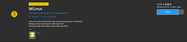 Microsoft ahora ofrece varias distribuciones de Linux en su tienda Windows Store, incluyendo WLinux. Un distribución basada en Debian y especialmente diseñado para funcionar con WSL, esta distribución se vende actualmente a un precio de 9,99€ con un 50% de descuento, en los próximos días si queréis haceros con ella os costará 19,99€ comprarlo.
