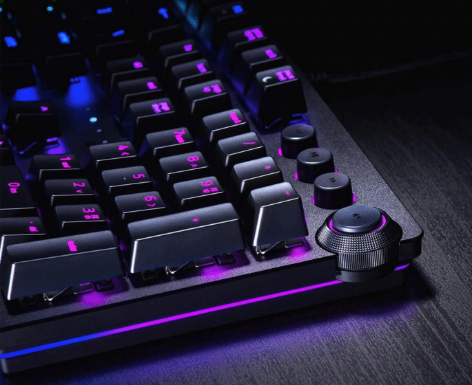 En 2014, Razer decidió crear sus propios conmutadores propietarios, en lugar de utilizar los conmutadores Cherry MX, que son omnipresentes en los teclados modernos. Razer ha actualizado estos interruptores para una nueva serie de teclados – el Razer Huntsman – con rayos láser para asegurar una actuación suave y un juego de teclas más duradero. Los llaman interruptores opto-mecánicos, y tienen capacidad para aguantar 100 millones de pulsaciones.