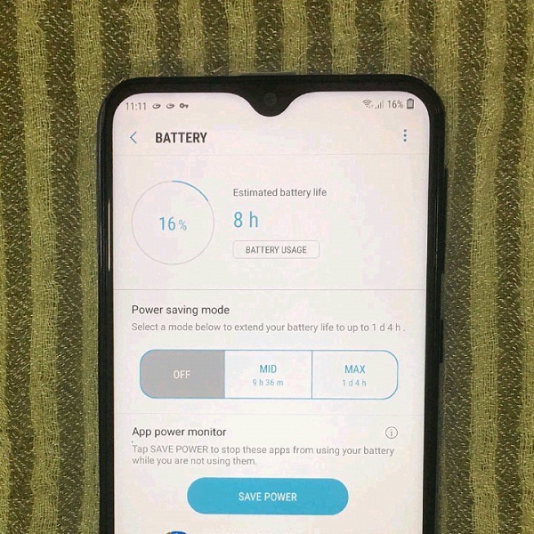 Dado que el Galaxy M20 se lanzará con una batería con una capacidad de 5000 mAh, es normal llegar a pensar que será un terminal con una muy buena autonomía. Y, de hecho, esto es lo que confirma el autor de las imágenes. El usuario señala que 45 minutos de juego tuvieron poco impacto en la autonomía. La imagen muestra que el teléfono inteligente puede funcionar 8 horas con el 16% de la carga. También se observa que el dispositivo está equipado con un puerto USB-C y carga «súper rápida».