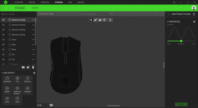 Como ya hemos mencionado las dos únicas zonas de iluminación que se puede controlar son la rueda de desplazamiento y el logotipo de Razer que en muchas ocasiones queda oculto por la palma de nuestra mano. Quizás no sea un ratón tan espectacular como otros de Razer…pero ofrece a cambio otros aspectos interesantes.
