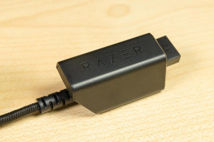¿Por qué mencionamos esto? Razer usa un molde de plástico con una forma específica alrededor de la cabeza del micro USB que se conecta al ratón y que permite que este se cargue. Esta cabeza ayuda a que este cable no se mueva mientras lo usamos…algo muy importante, pero también impide que podemos usar ningún otro cable para cargar el mismo.