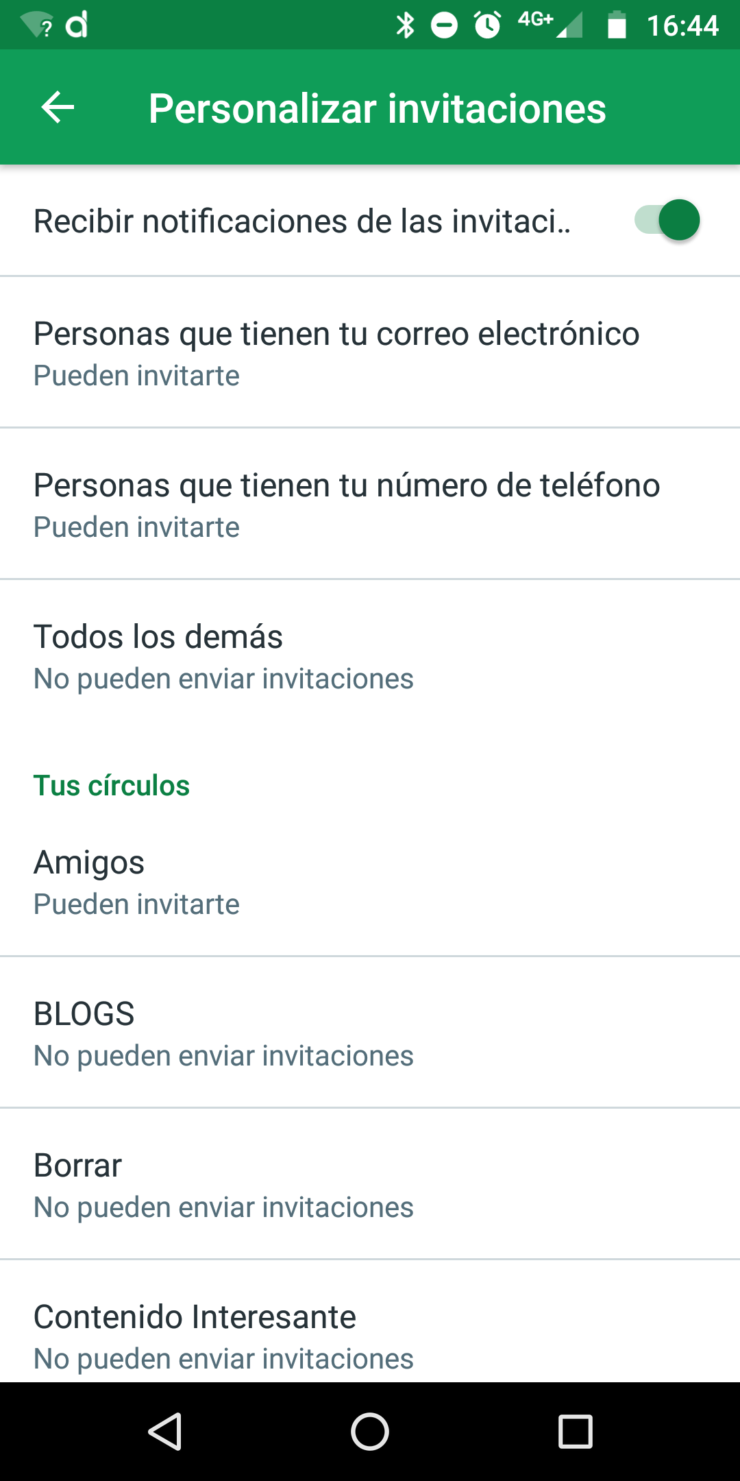 En cuanto a los círculos debemos de tener en cuenta que dejarán de existir dentro de poco…pero para evitar que seamos molestados usando esta opción lo mejor es que pongamos esta opción en No pueden enviar invitaciones.