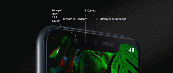 Y en cuanto a la cámara frontal, es de 8 MP (apertura f1.9) y alcanza una angular de 80º. Hay un sensor ToF que corresponde a la Cámara Z (f1.4), también incluida en el notch frontal, y es el que se utiliza para el desbloqueo y la tecnología por gestos.