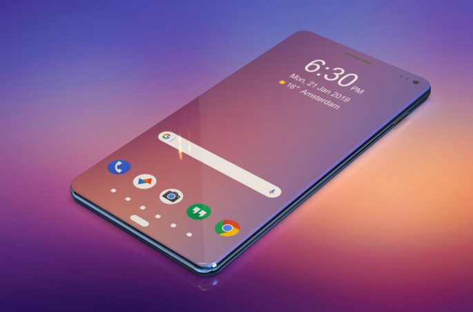 Cabe señalar que en las imágenes que nos acompañan se puede ver una representación de cómo podría ser este dispositivo. En este caso vemos un terminal cuya pantalla no cae por los laterales, pero cubre toda la superficie frontal del dispositivo. Dado que el término pantalla completa v2.0 simplemente fue acuñado por personas con información privilegiada, y ningún teléfono de este tipo ha aparecido todavía en el mercado, existe una cierta confusión sobre este tema…y sobre como será finalmente esta…así que tomad estas imágenes simplemente como un «acompañamiento poético».