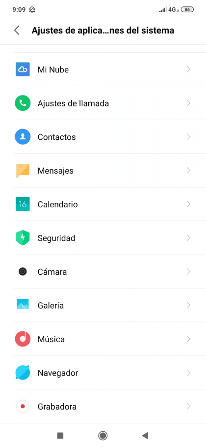 En esta pantalla tendremos que navegar hacia las opciones finales y buscar Ajustes de aplicaciones del sistema.