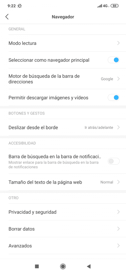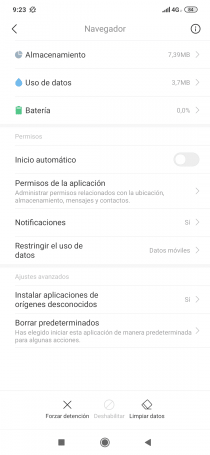 En esta nueva sección tendremos que buscar el icono de la app del Navegador de MIUI. Al pulsar sobre ella se abrirá los ajustes/preferencias del mismo. Desmarcaremos la opción de Seleccionar como navegador principal.