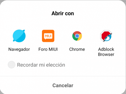 Entre las opciones disponible veremos Chrome entre ellas. Si queremos establecer Chrome como navegador predeterminado de MIUI tendremos que seleccionar la casilla Recordar mi elección
