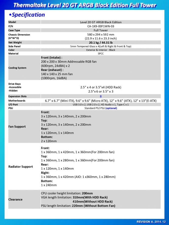 A continuación os dejamos el listado completo con las especificaciones de esta nueva caja de Thermaltake: