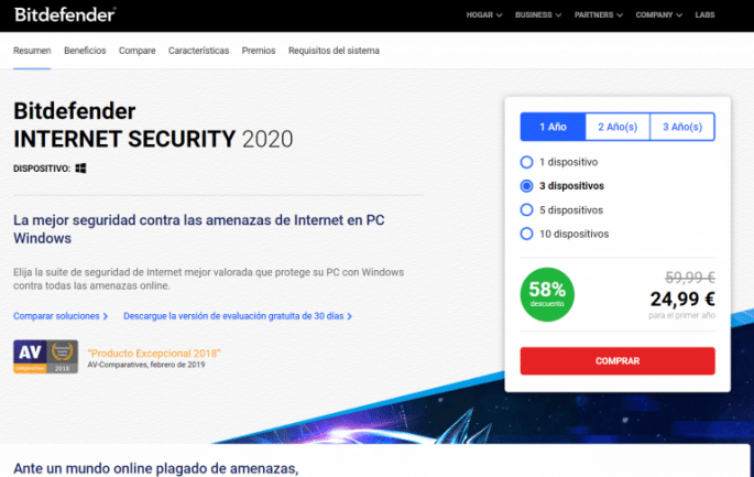 Bitdefender, uno de los nombres más reconocidos en la protección contra el malware y otras amenazas online. En esta ocasión queríamos analizar lo que ofrece la nueva versión de su antivirus o suite de seguridad, nos referimos concretamente a Bitdefender Internet Security 2020.