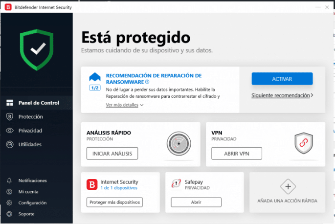 La característica principal de Bitdefender Internet Security 2020 es que permite bloquear cualquier malware antes de que este se aloje en nuestro PC. Sin embargo, dos de las novedades de la versión de este año es que llega con un firewall mejorado y el nuevo anti-ransomware.