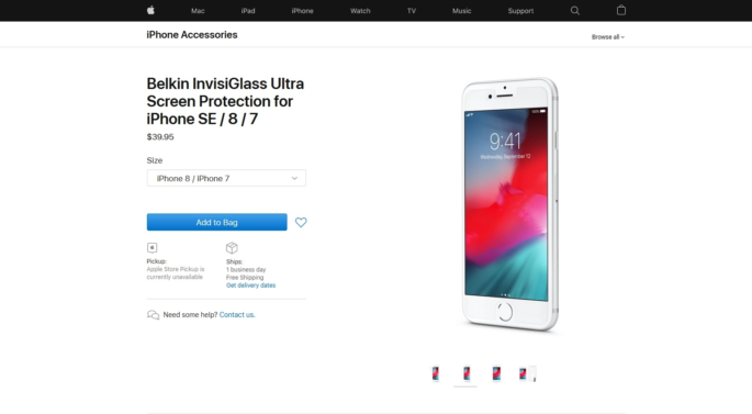 La filtración de la llegada de este nuevo terminal se produjo por dos cosas. Por un lado Apple retiró de su tienda online, el Apple Store todas las referencias al iPhone SE. Aunque la confirmación como os comentábamos vino de la mano de la venta de uno de los accesorios de este futuro nuevo terminal. A través de la venta de un cristal protector de pantalla de Belkin, en la tienda oficial de Apple, que se descubrió que el nuevo iPhone SE debería tener el mismo diseño que el iPhone 8, lo que puede confirmar los rumores de que utilizará una pantalla de 4,7 pulgadas, al igual que el iPhone 7 y el iPhone 8.