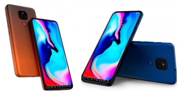 La cámara dual tiene sus sensores en la parte inferior del recuadro, mientras que el flash se centra en la parte superior. Esta cámara dual contará con un sensor principal de 48 MP, una gran mejora en relación al anterior Moto E6 Plus, con un sensor principal de sólo 13 MP. En las filtraciones recientes queda evidente que el sensor de huellas será posterior en este modelo, y no lateral como el del Moto G9 Plus, también filtrado. El terminal vendrá en colores de presentación azul y naranja.