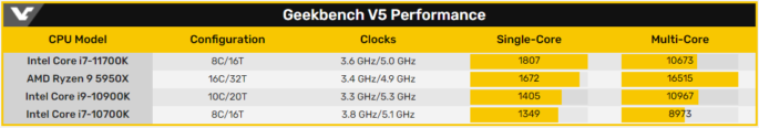 Intel Core i7-11700K superó a Ryzen 9 5950X