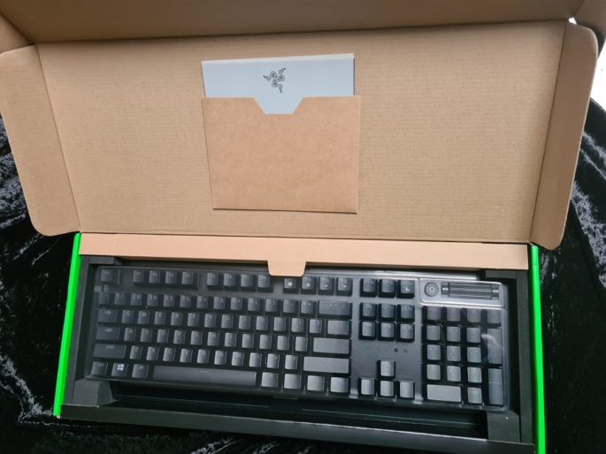 Al abrir la caja nos encontramos con una cubierta de plástico dura que protege al teclado, Razer incluye este tipo de protección en sus equipos a fin de cuidarlos del polvo y golpes.