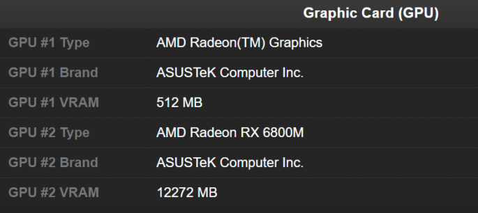 Todavía faltan todos los detalles, pero todavía se puede destacar algo. Una nueva filtración indica que el volumen de la memoria de vídeo de la Radeon RX 6800M es de 12 GB.