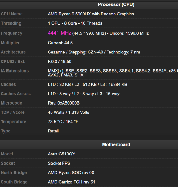 La base de datos de CPU-Z contiene registros sobre el próximo portátil para juegos ASUS ROG Strix G15 (G513QY) con procesador AMD Ryzen 9 5900HX y tarjeta gráfica Radeon RX 6800M aún no anunciada.