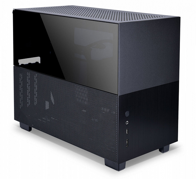 Los paneles de la carrocería están hechos de aluminio. En la parte inferior izquierda del panel frontal hay un conector USB 3.0, un conector USB 3.1 Tipo-C y un conector de audio.