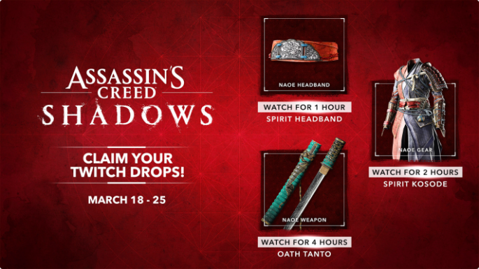Ubisoft también aprovechó el programa de Twitch Drops en dos fases: la primera abierta a todos los streamers y la segunda exclusiva para miembros del Ubisoft Creator Program. Este sistema no solo incentivó la visualización, sino que premió a los usuarios con ítems cosméticos in-game. Por ejemplo, el que veía durante una hora obtenía una cinta especial; tras cuatro horas, conseguía una daga exclusiva.