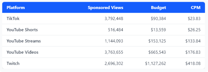 - TikTok: Sorprendió con un rendimiento tres veces mayor que Twitch en vistas, pese a recibir una fracción del presupuesto.