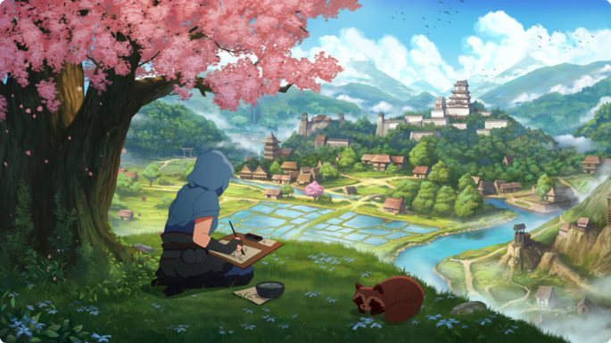 - Lo-fi Girl, el popular canal de música relajante, publicó un álbum exclusivo de 20 temas con visuales animados que mostraban a Naoe pintando bajo un cerezo.