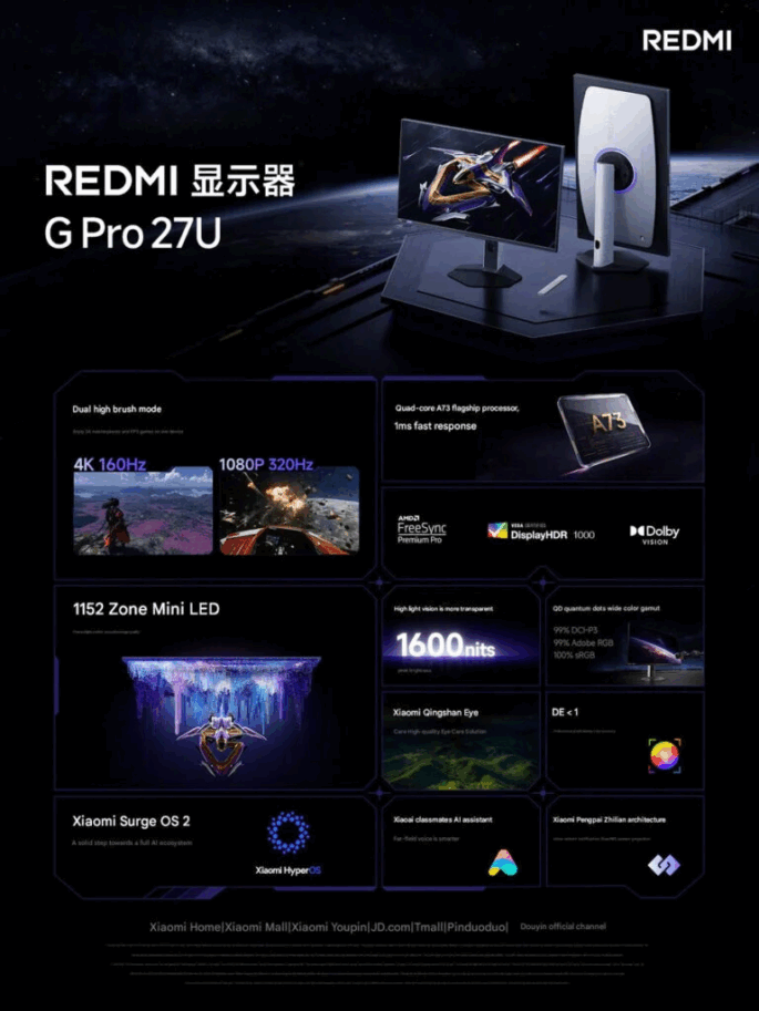 El monitor gaming Redmi G Pro 27U ya está disponible en China por 2.699 yuanes, lo que equivale a aproximadamente 345 € al cambio actual. Este precio supone un incremento del 35% respecto al modelo anterior, una subida justificada por la evidente mejora en todos los apartados técnicos. Además, Xiaomi ofrece tres años de garantía y una política de devolución sin preguntas durante siete días.
