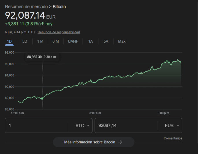 Bitcoin cae a 92.000 euros tras la disputa entre Trump y Musk