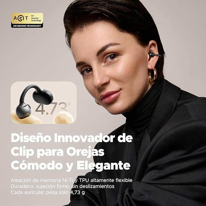 - 【Ajuste extremadamente cómodo y estable】Los auriculares inalámbricos SOUNDPEATS POP Clip Open Ear Clip cuentan con un revolucionario estilo de clip de oreja abierta. Fabricados con TPU de alta resistencia y alambre de acero con memoria de grado A (alambre con memoria de aleación de níquel-titanio), cada auricular pesa solo 4,73 g. Este diseño liviano y ergonómico se sometió a exhaustivas pruebas de desgaste con cientos de personas para garantizar un ajuste cómodo y sin presión para casi todos. Ideal para personas con gafas o que padecen otitis media.
