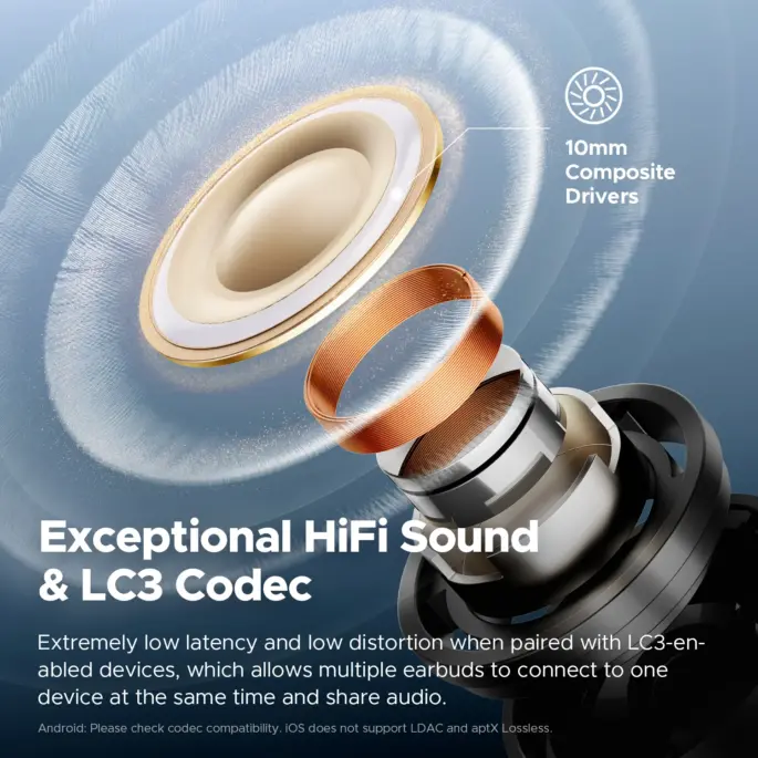 - Audio Hi-Res con LDAC y aptX Lossless. Auriculares Bluetooth con sonido de alta fidelidad gracias a los códecs LDAC, aptX Lossless y Snapdragon Sound. Escucha cada detalle con claridad cristalina, como si estuvieras en un estudio.